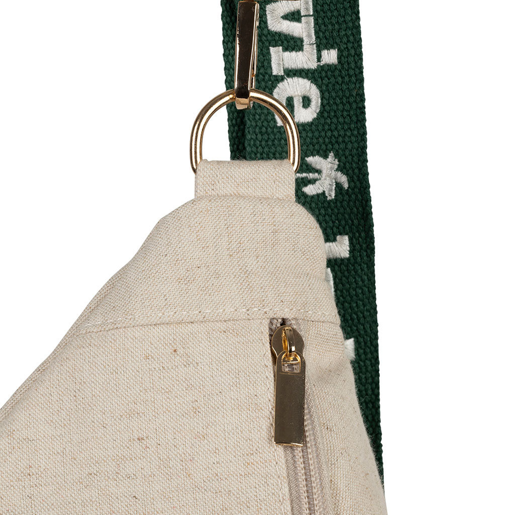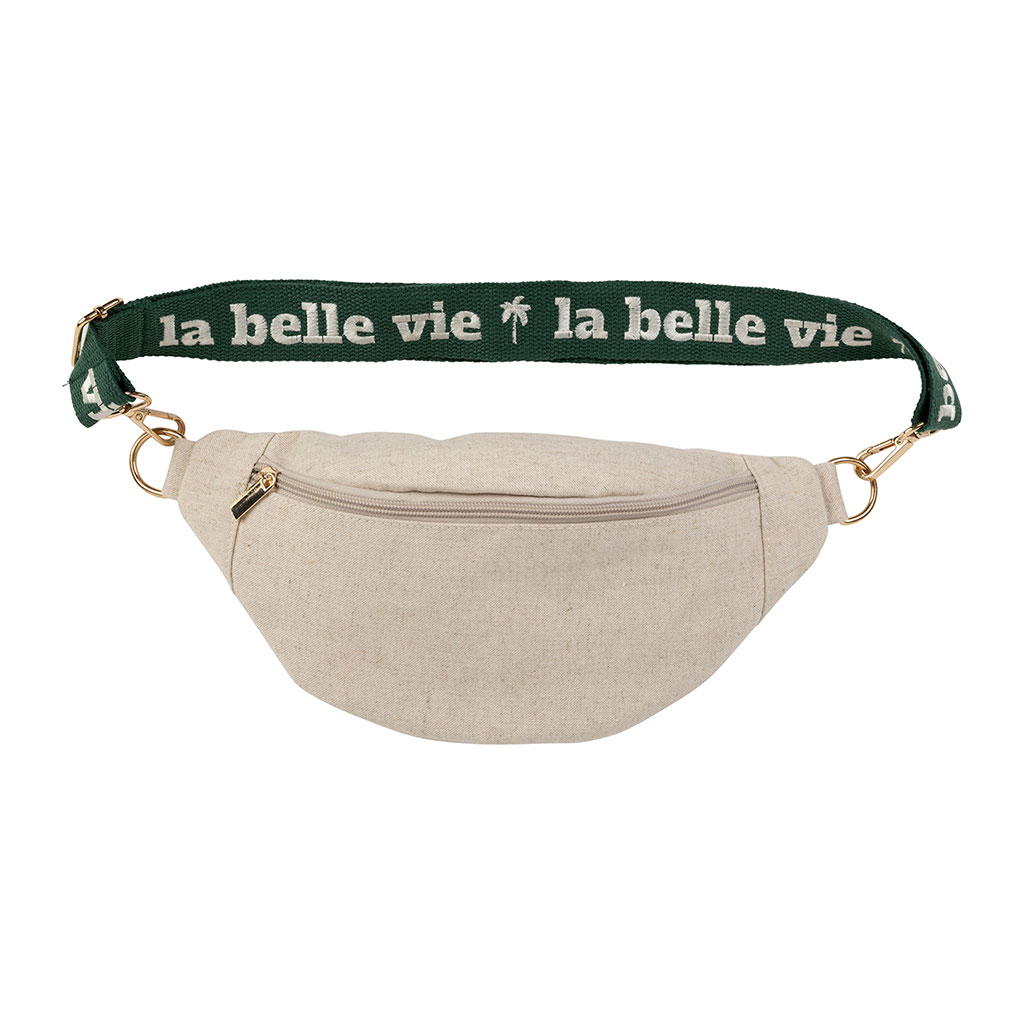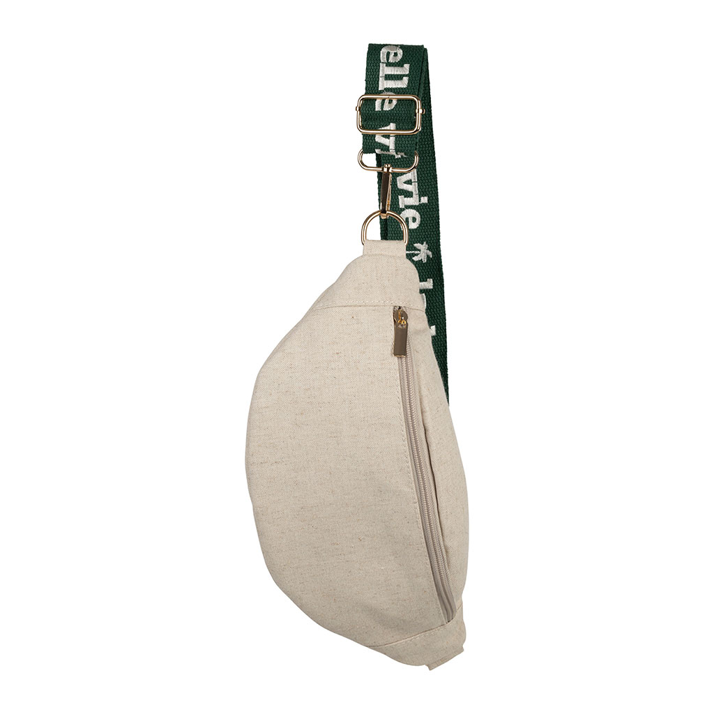 05 56 69 68 67-contact@fabriquedestyles.frBanane en lin et coton écru et émeraude avec bandoulière amovible - Bananez