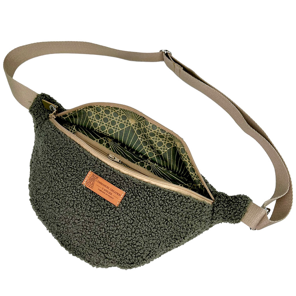 05 56 69 68 67-contact@fabriquedestyles.frSac banane en bouclette kaki