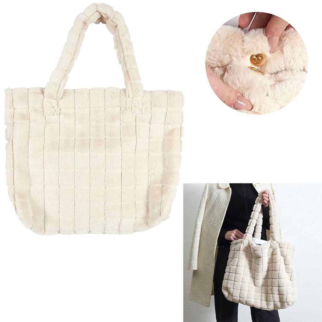 Découvrez notre sac fluffy en fausse fourrure crème, l'accessoire idéal pour toutes celles qui souhaitent injecter une touche de douceur et de confort dans leur quotidien.