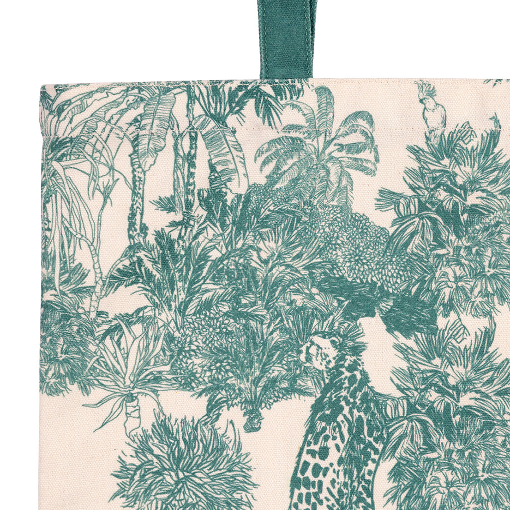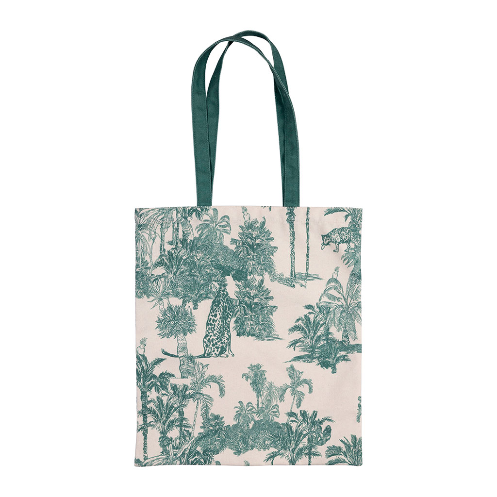 05 56 69 68 67-contact@fabriquedestyles.frSac tote bag en coton écru et palmiers émeraude - Mocoa