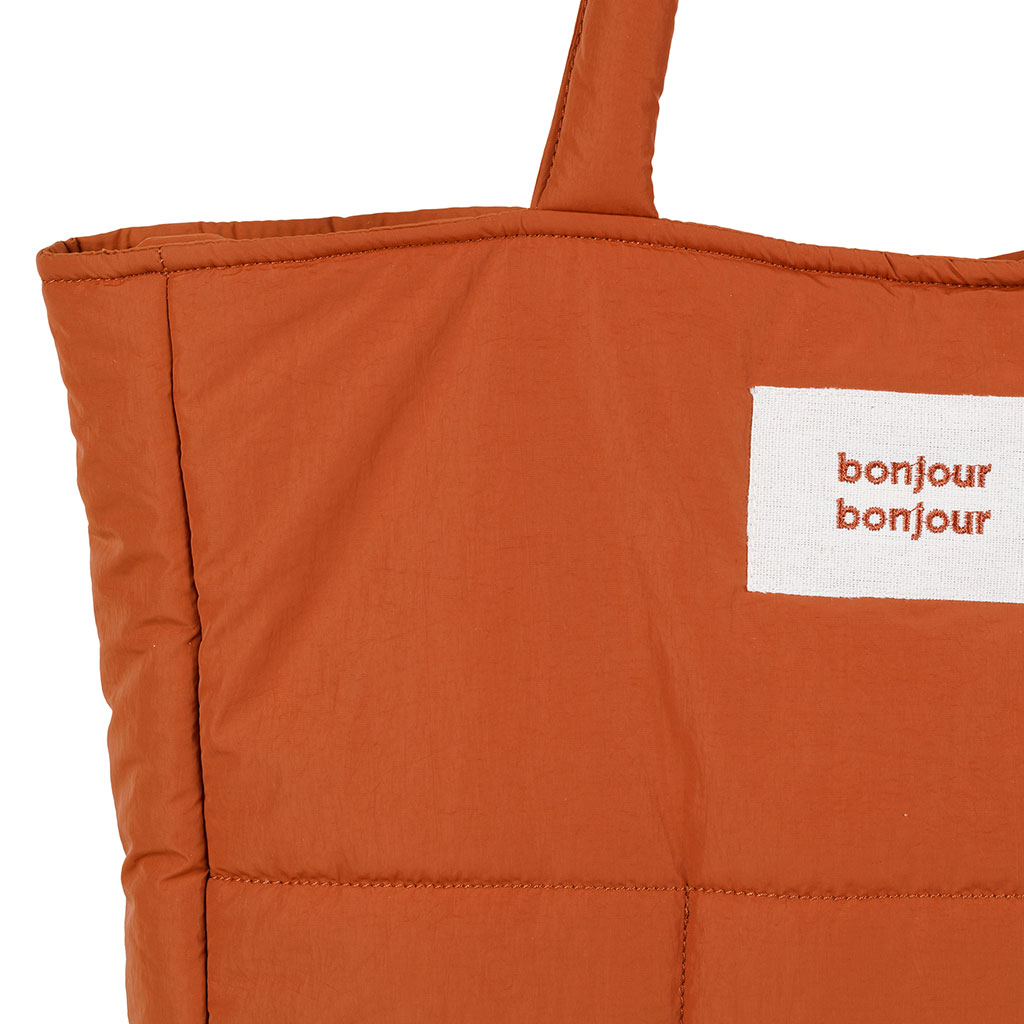 Découvrez notre sac tote bag en tissu matelassé terracotta, un compagnon indispensable pour votre quotidien.