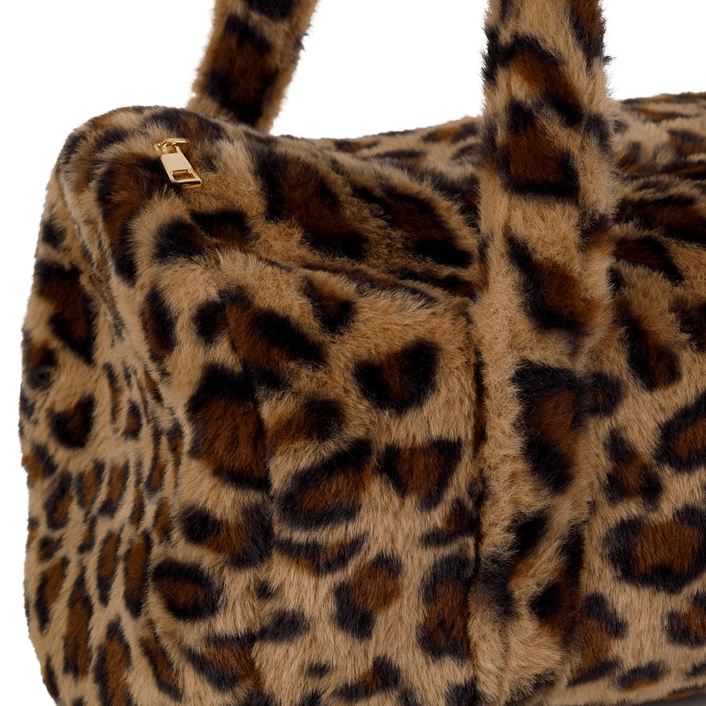 05 56 69 68 67-contact@fabriquedestyles.frSac week-end en fausse fourrure léopard beige et brun - Félien