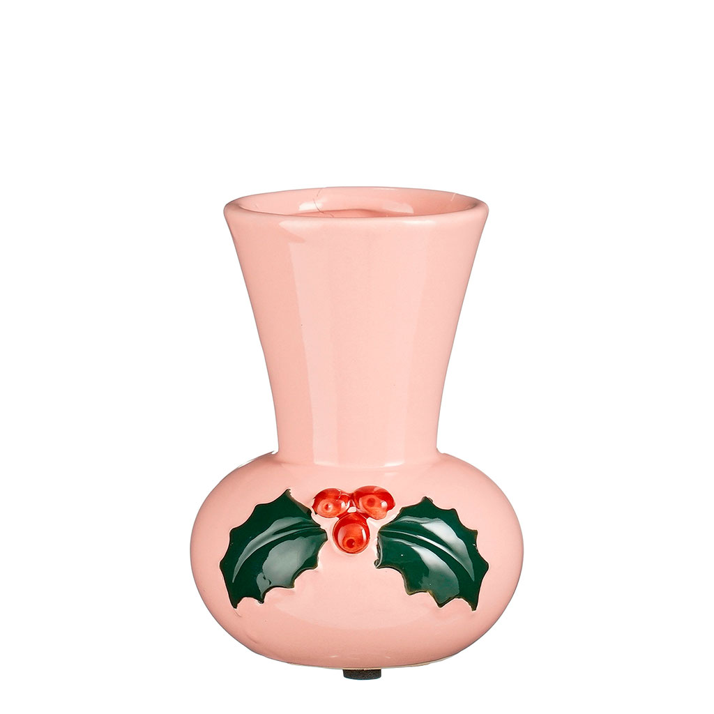 Ajoutez une touche chaleureuse et festive à votre décoration avec ce vase en céramique rose, parfait pour égayer vos espaces durant la période de Noël.