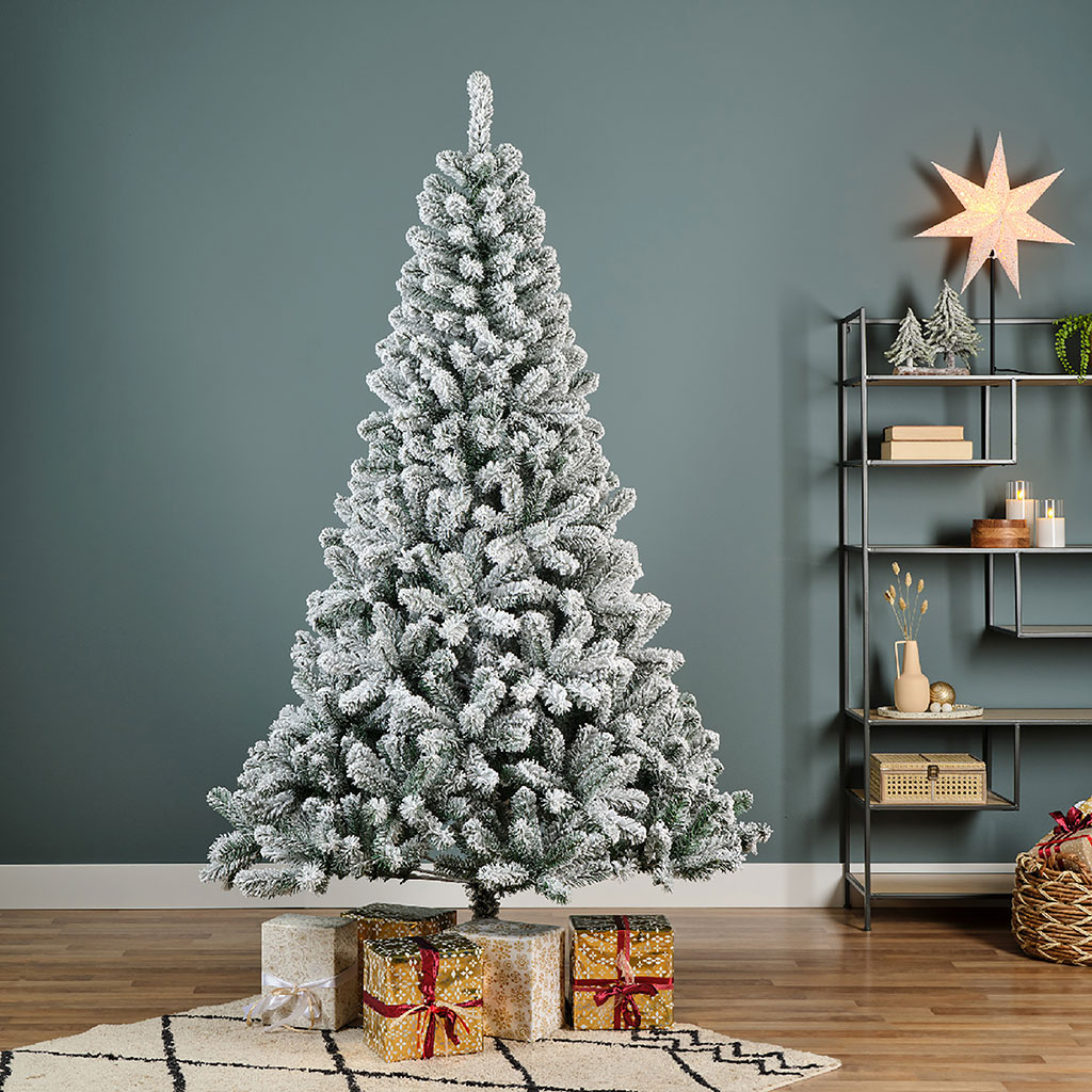 Son feuillage d’un vert profond offre un contraste saisissant avec sa légère couvrance enneigée, créant ainsi une atmosphère chaleureuse et accueillante dans n'importe quelle pièce.