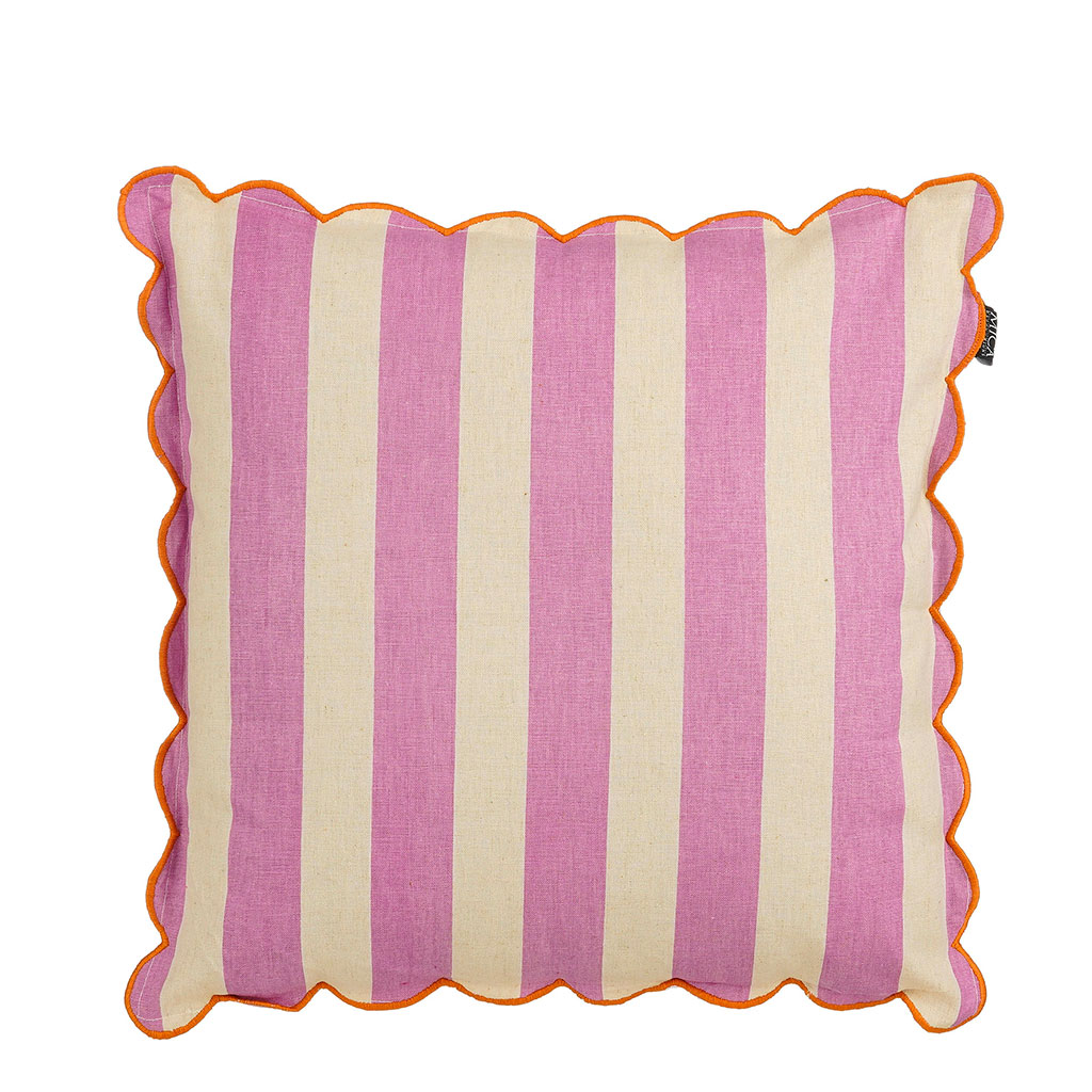 Ajoutez une touche de couleur douce et apaisante à votre espace avec ce magnifique coussin aux rayures lilas et écru.