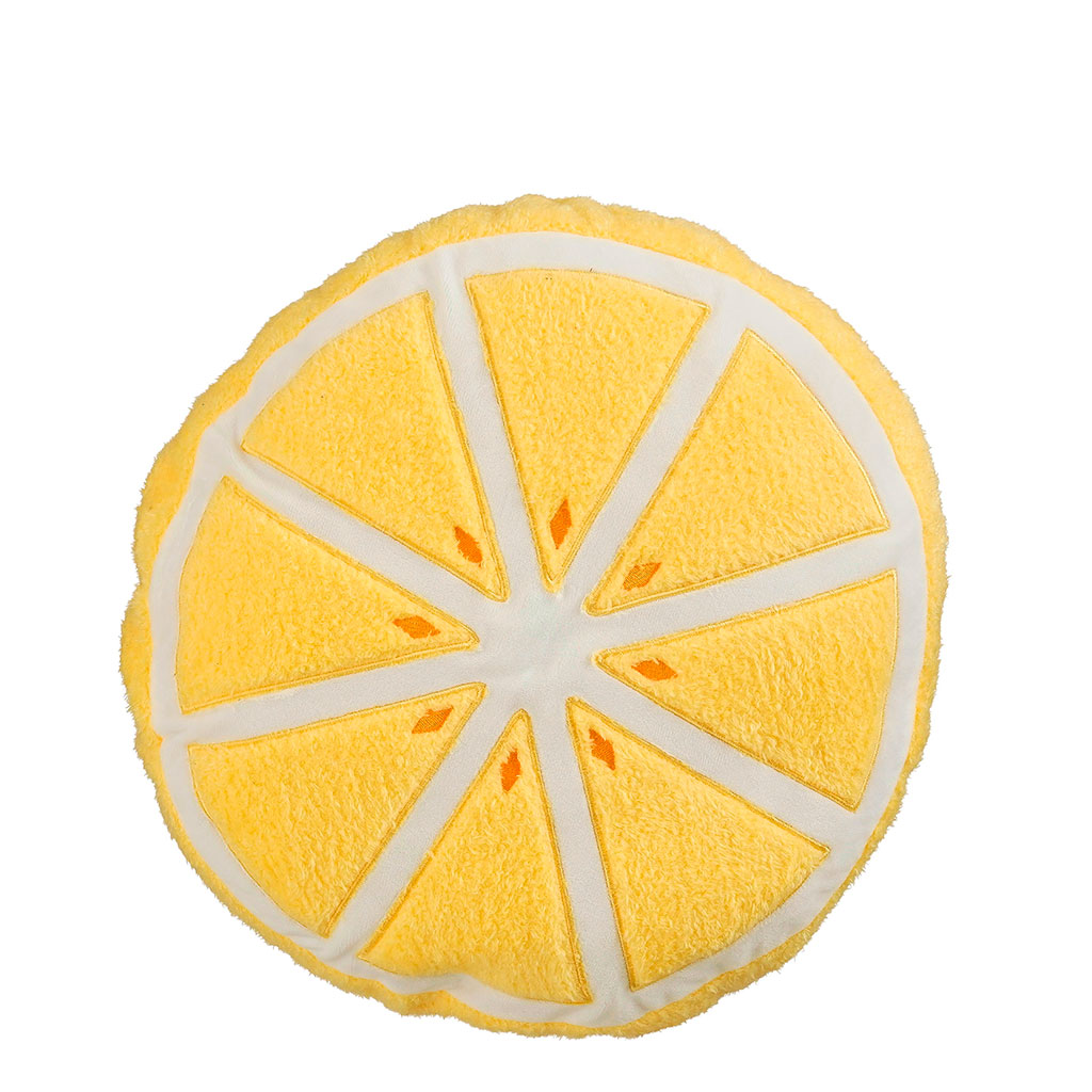 Ajoutez une touche de fraîcheur et de personnalité à votre espace avec ce coussin rond en forme de citron.