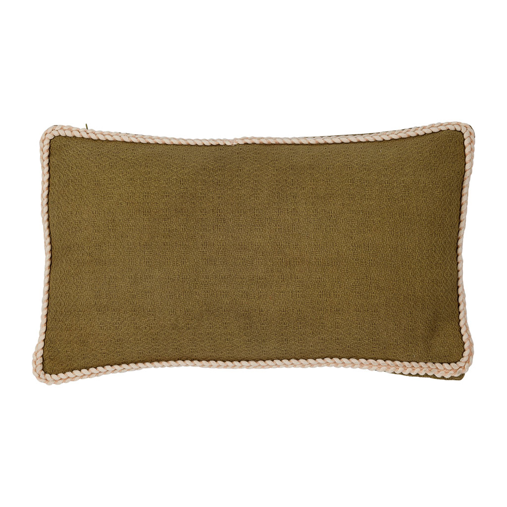 Confectionnée en coton texturé, cette housse rectangulaire 50x30 cm séduit par sa teinte terre profonde et son joli contour en tresse écrue.