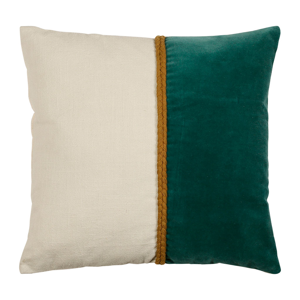 05 56 69 68 67-contact@fabriquedestyles.frHousse de coussin en velours coton émeraude et écru 45x45cm - Neo