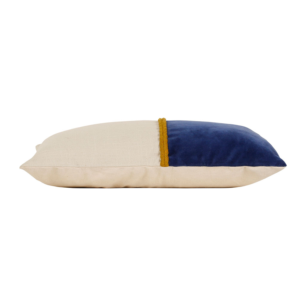 05 56 69 68 67-contact@fabriquedestyles.frHousse de coussin en velours coton indigo et écru 50x30cm - Neo