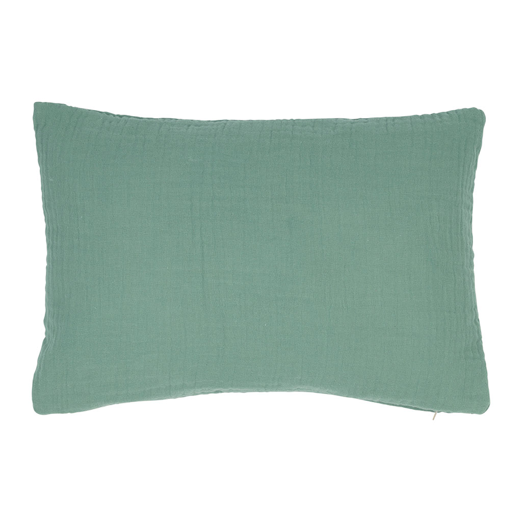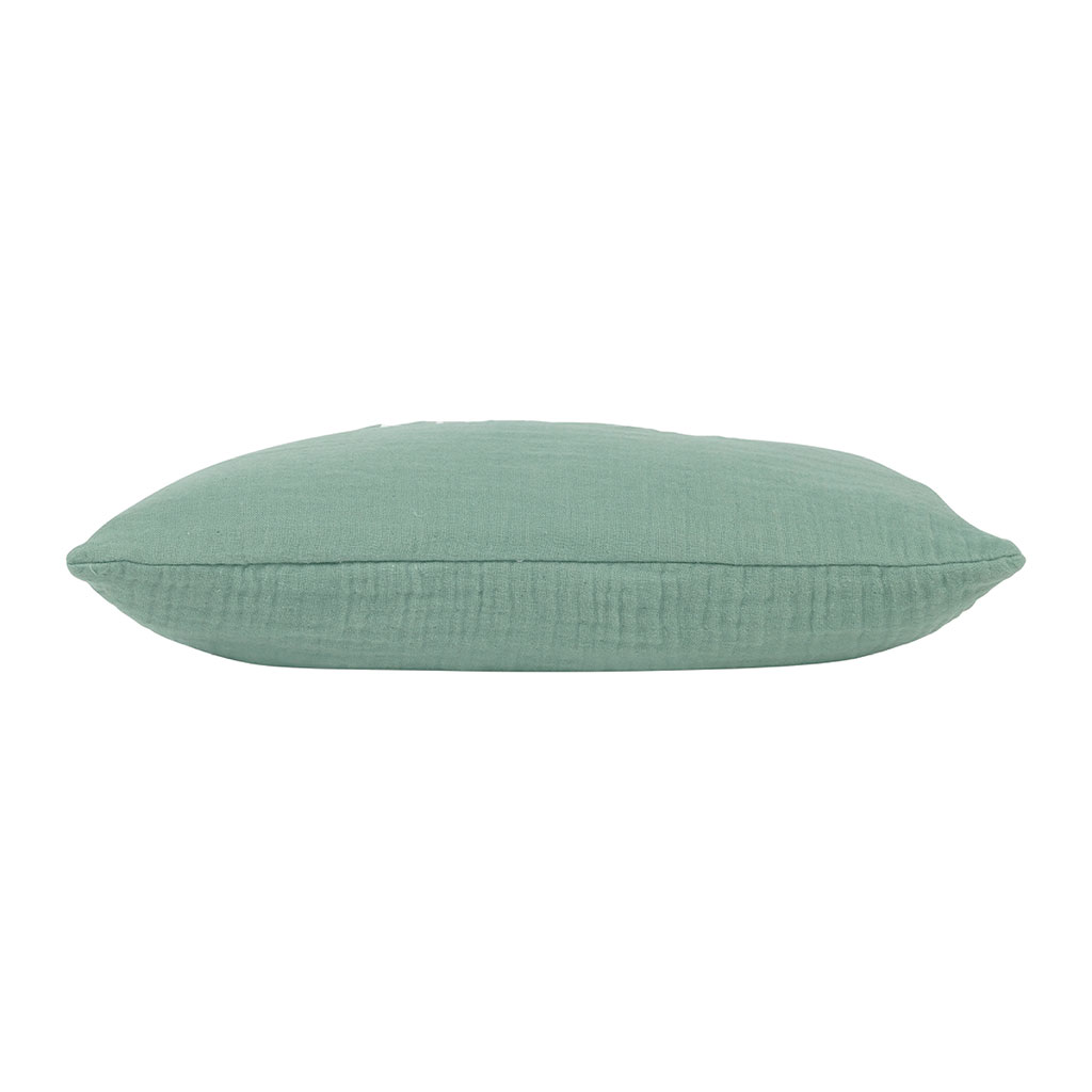 Ajoutez une touche de confort à votre intérieur avec ce coussin en gaze de coton teinté d'un doux coloris sauge.
