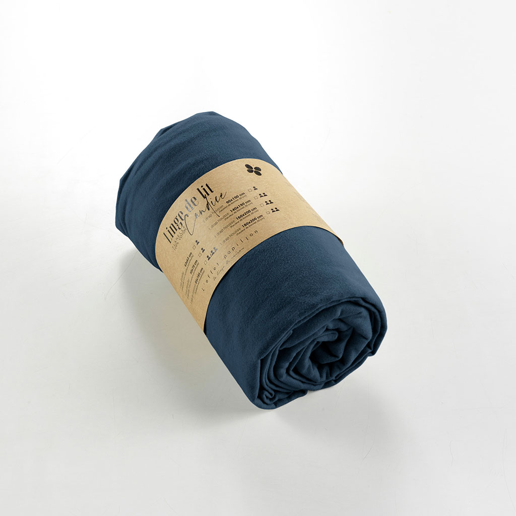 05 56 69 68 67-contact@fabriquedestyles.frDrap housse en flanelle de coton bleu nuit 160x200cm - Candice