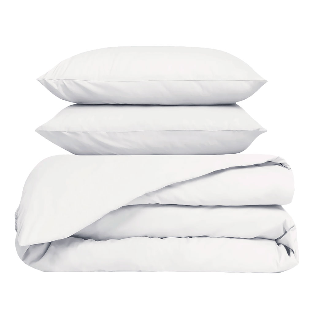 Transformez votre chambre en un véritable havre de paix avec notre ensemble de literie en percale de coton blanc.