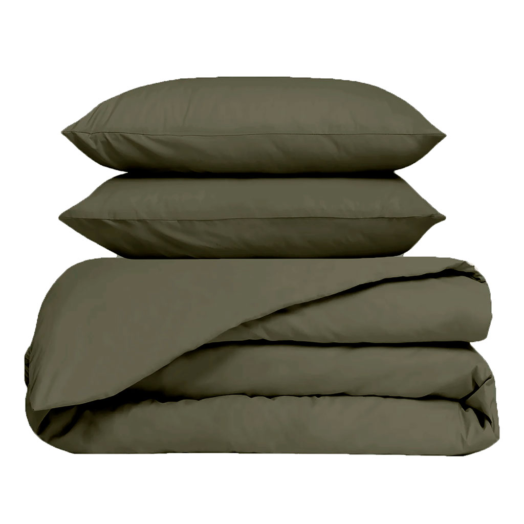 Transformez votre chambre en un havre de paix avec cette magnifique housse de couette en percale de coton kaki.