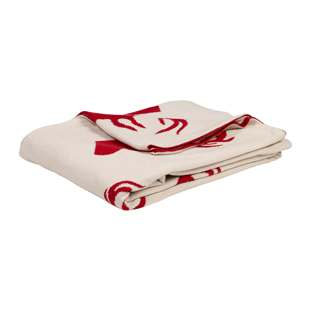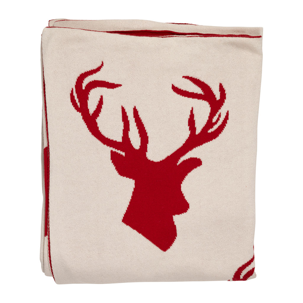 Découvrez notre charmant plaid en coton rouge, orné d'un motif cerf, idéal pour apporter une touche festive à votre intérieur pendant les fêtes de fin d'année.