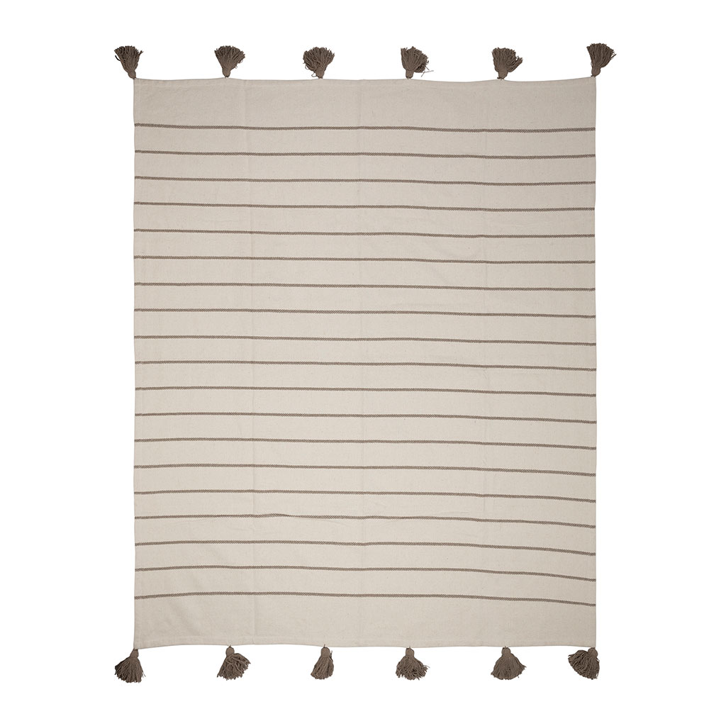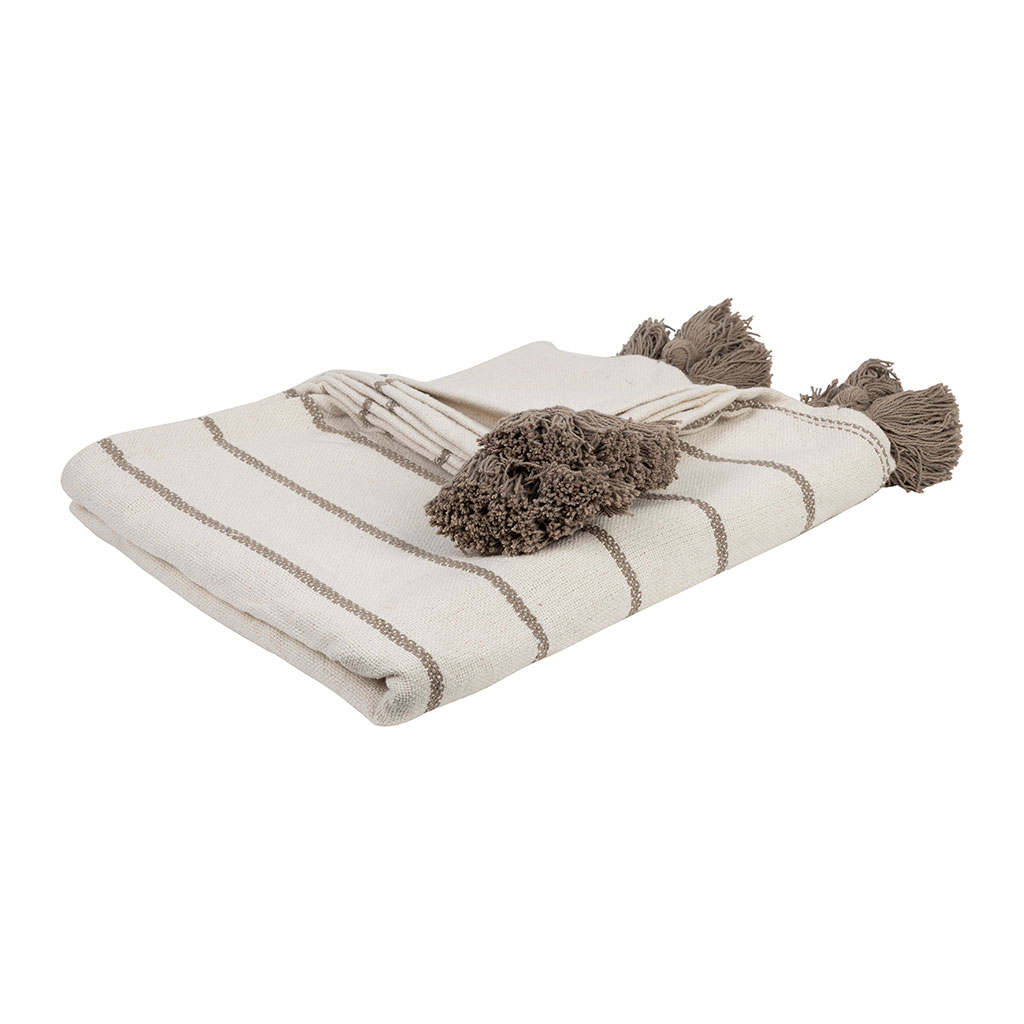 05 56 69 68 67-contact@fabriquedestyles.frPlaid en coton rayé écru et taupe 170x130cm - Nomadea