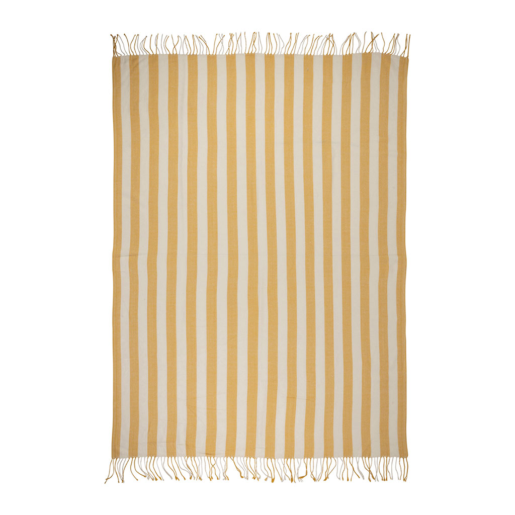 Découvrez l'accessoire idéal pour réchauffer vos soirées d'hiver : notre plaid en acrylique écru et jaune.