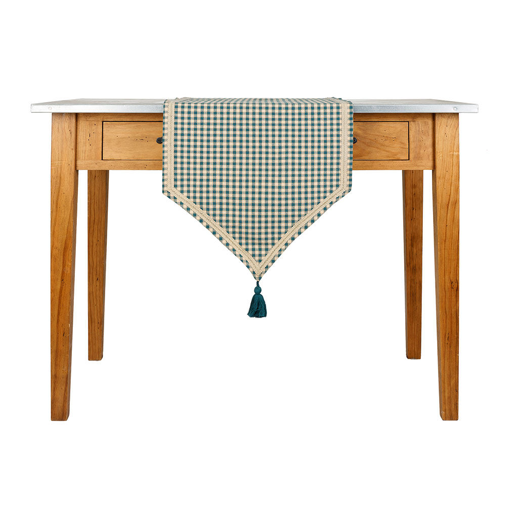 05 56 69 68 67-contact@fabriquedestyles.frChemin de table à carreaux en coton bleu antique 150x45cm