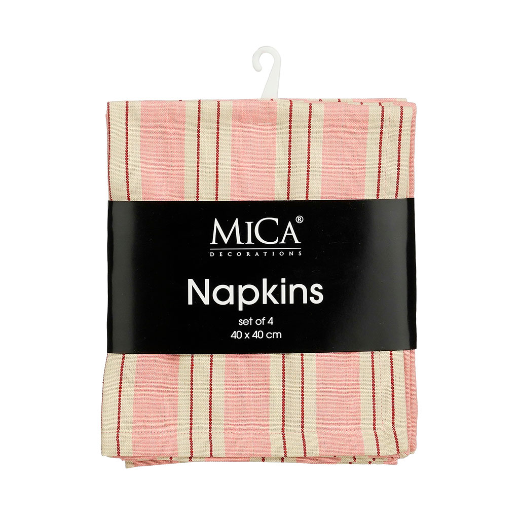 05 56 69 68 67-contact@fabriquedestyles.frServiettes de table x4 en coton rayées rose 40x40cm - Evie