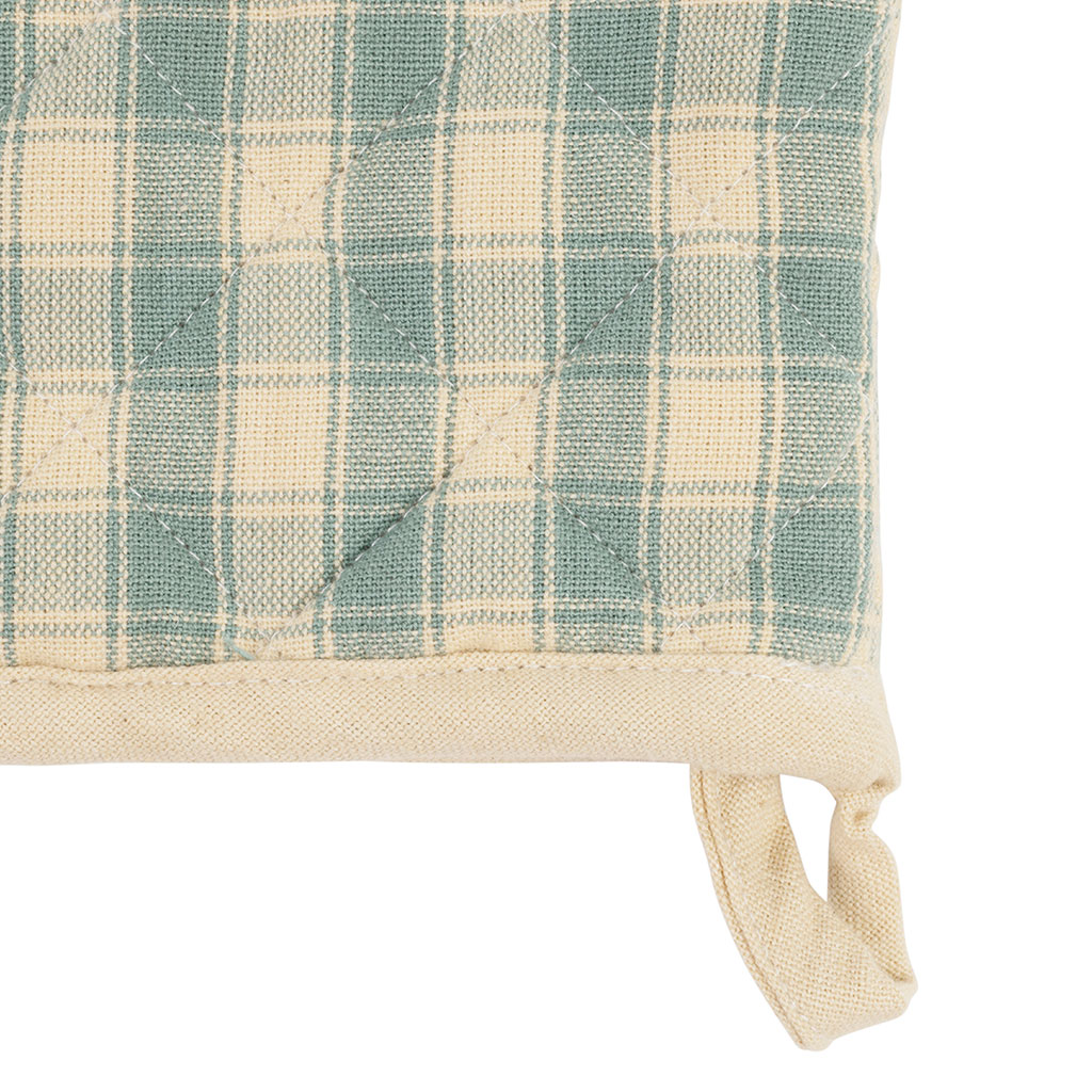 Découvrez le charme intemporel de notre ensemble gant et manique en coton vichy sauge - Campagne.