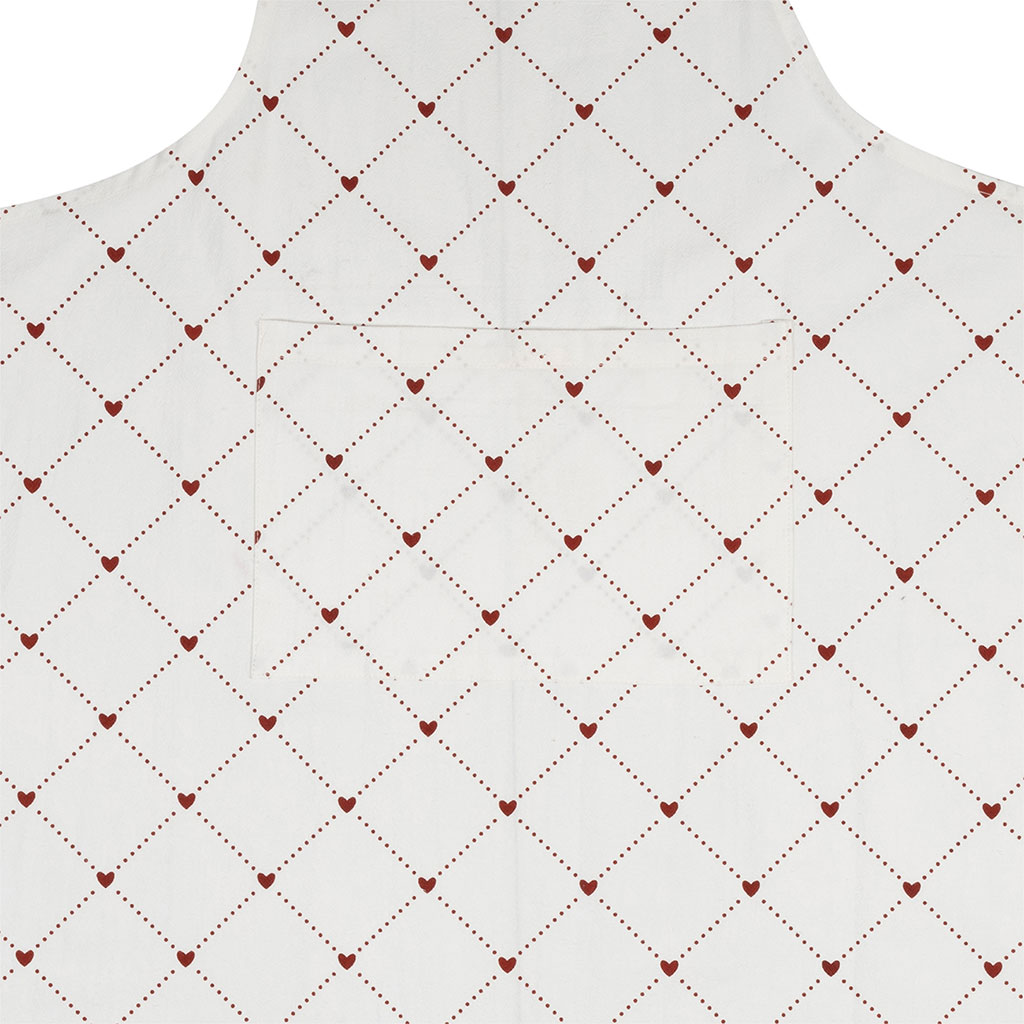 Découvrez notre tablier en coton orné de petits cœurs rouges et blancs, parfait pour apporter une touche de gaieté à votre cuisine.